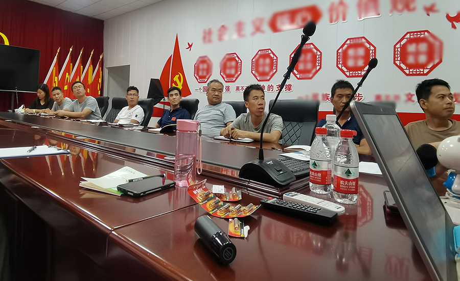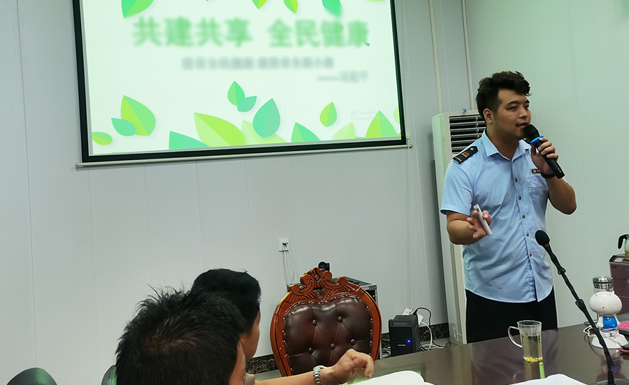 在會議室開展:環境衛生、垃圾分類、飲水安全以及新環保法律法規等相關知識的會議
